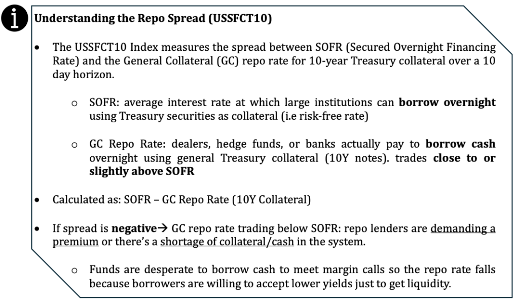 This widening negative spread reflects tightening repo market conditions, signaling that it became increasingly difficult and costly for hedge funds to finance their long Treasury positions. As repo availability shrank and margin requirements rose, leveraged players were forced to liquidate, further fueling the sell-off in Treasuries and amplifying market volatility.