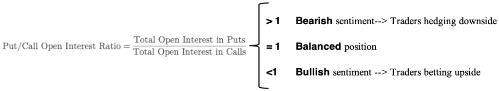 The Put/Call Interest Ratio measures the quantity of outstanding Put contracts relative to Call contracts. This metric does not rely on implied volatility, but on trader positioning.