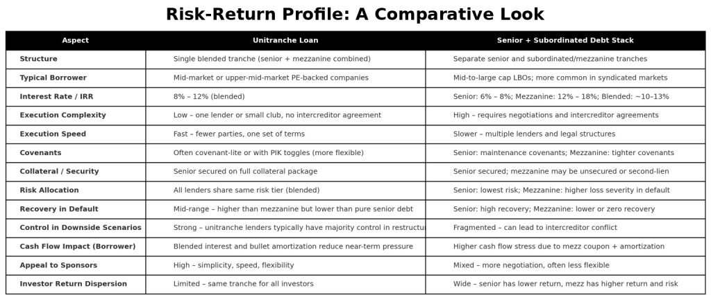 Today, unitranche loans are thriving. According to recent data, unitranche volume has rebounded sharply in North America and is gaining ground in Europe, particularly for mid-cap buyouts and sponsor-to-sponsor deals.