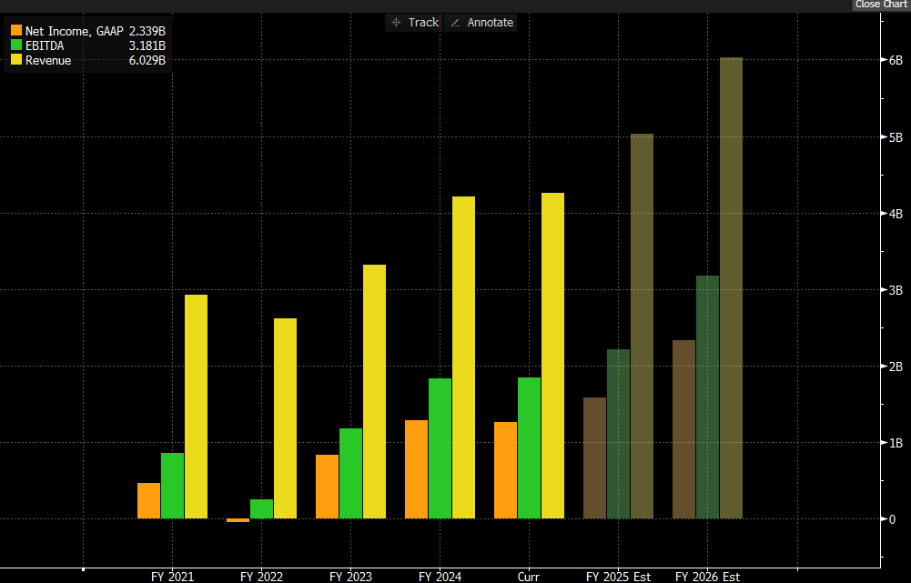 The company´s net income increased 26,692% between 2023 and 2024, from $1,1M to $306M, and kept rising during the first quarter of 2025 to $509M.