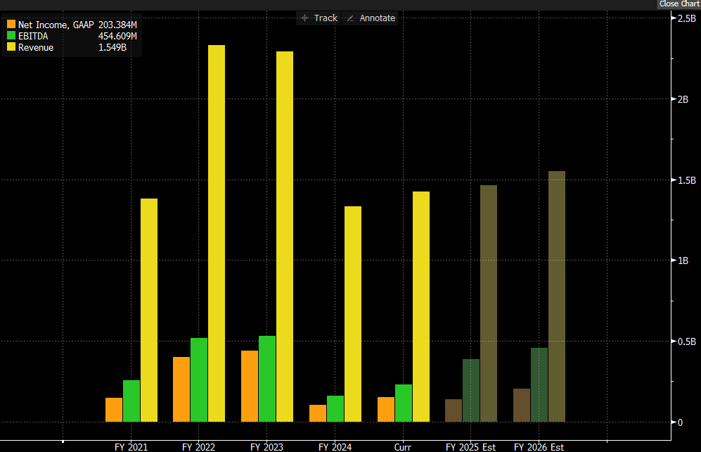 Enphase Energy has historically been a margin leader, but its EBITDA margin has moderated recently. After peaking at 32% in 2022, Enphase’s margin is expected to be 26% in 2025 and 29% in 2026.